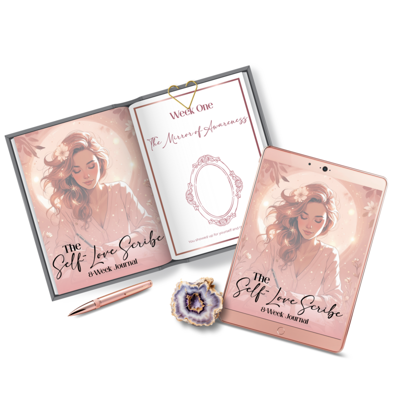 The Self-Love Scribe is a soft place to land. It is an eight-week guided journey designed to help you quiet your inner critic, rebuild self-trust, and rediscover the gentleness you have always deserved.
